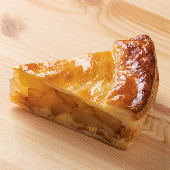 旬のりんごだけを使⽤。こだわり抜いたアップルパイは、⽢酸っぱくてさわやかな美味しさ。