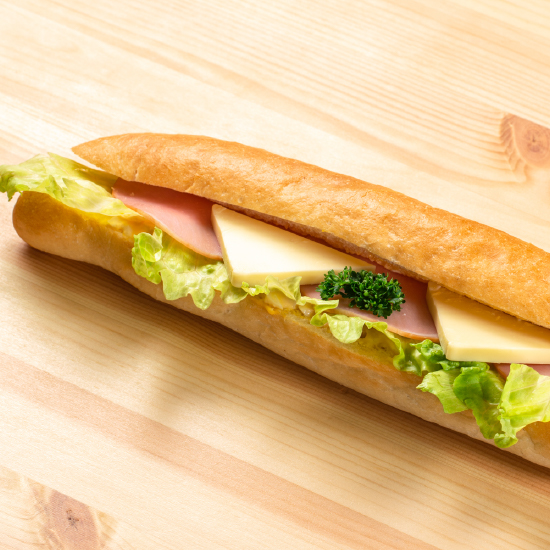 分厚いチーズのインパクトは大!フランスで代表的なバゲットサンド。大満足のボリュームも自慢です。