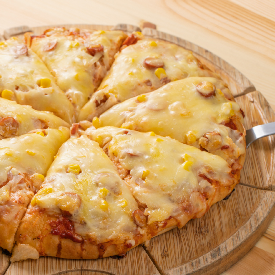 味わい深いピザソースにチーズをたっぷり!厚くて柔らかいふんわり生地で大満足のピザです。