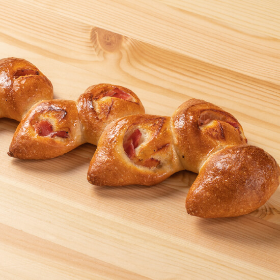 麦の穂をかたどったハードパン。噛みしめるほどにパンとベーコンの味わいが広がります。