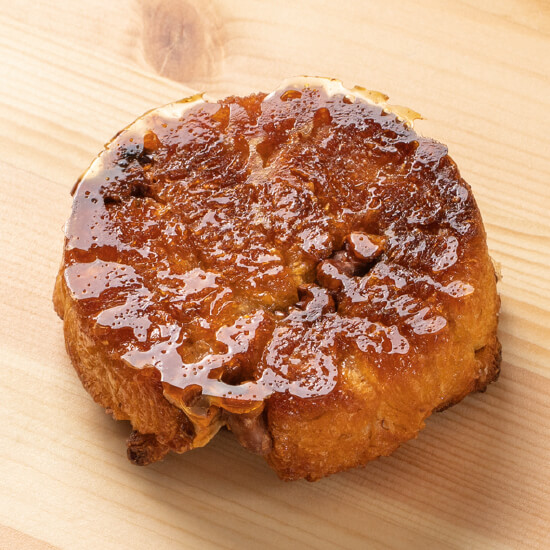 薄くパリッとした⽪、ふぞろいな気泡と光沢のある断⾯がおいしさの証。⼝に⼊れると最後にコクがあります。