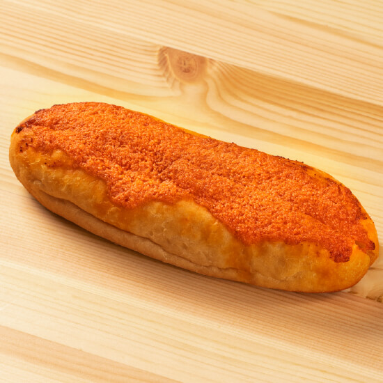 ピリ辛めんたいとお餅という、禁断の組み合わせををトッピング。大人気のおかずパンです。
