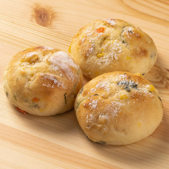 栄養価の高い玄米を使用し、さらに3種類の野菜を混ぜ込んで焼いたパン。健康志向の方へおすすめです。